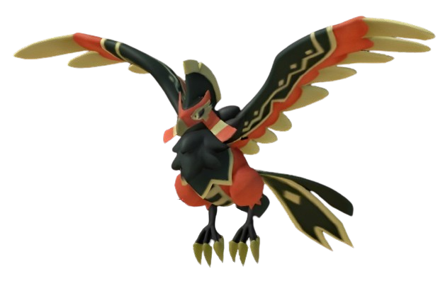 Faleris is a large avian Pal serving as a reference to a falcon. The majority of its body is colored ebony black, while the middle parts are scarlet red. The edge of its wings and claws of its feet are colored old gold. The feathers atop its head resemble the plumes of Roman helmets.