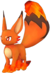 Foxparks is a firey fox pal that is a bright red-orange bearing resemblance to a red fox. Its ears are long with the insides being tan and the ends of the ears are tipped in black. It has eyebrows that are a lighter shade of yellow. On each side of Foxsparks' face, messy tufts of fur are visible. The stomach of Foxsparks like the inside of its ears are tan. It has a large bushy tail that like its ears, is tipped with a black pattern. A prominent feature on Foxsparks is being engulfed with flames that cover over its legs and the tip of its tail. The eyes of Foxparks come a crimson red color.