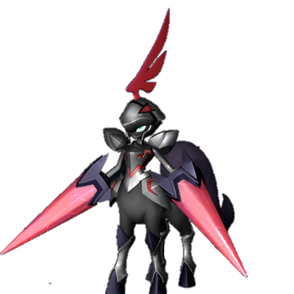 Necromus is a centaur with black armor etched in red markings, a single red wing on his helmet and is armed with a pair of red lances for combat.